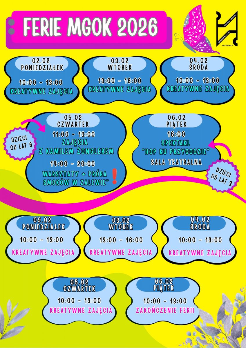 Miejsko-Gminny Ośrodek Kultury w Stepnicy zaprasza dzieci w wieku szkolnym na ferie zimowe 2026, pełne kreatywnych zajęć, warsztatów oraz wydarzeń teatralnych.