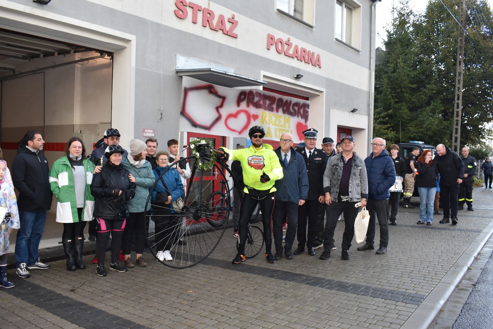 Pan Łukasz Jęcz, strażak i uczestnik niezwykłej charytatywnej wyprawy „Bicyklem przez Polskę dla Kitki. Misja po zdrowie”, tego dnia dotrze do Stepnicy.